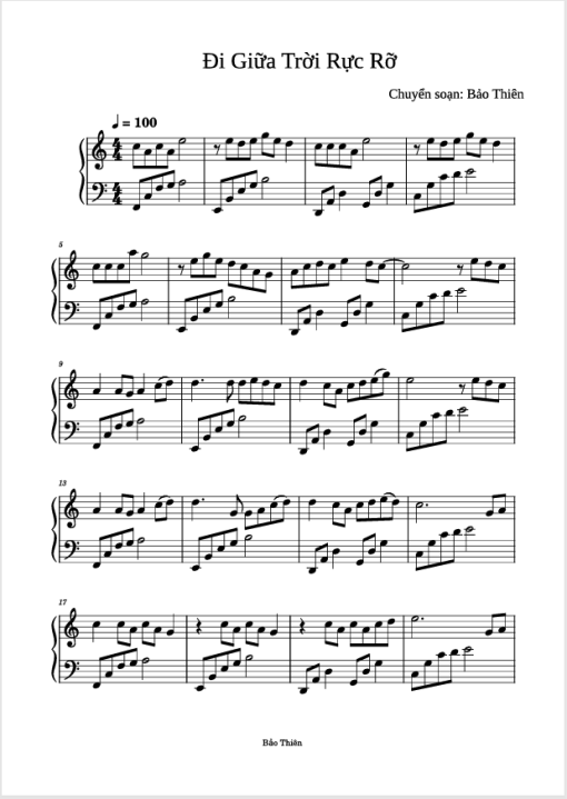 Sheet piano bài nhạc Đi Giữa Trời Rực Rỡ